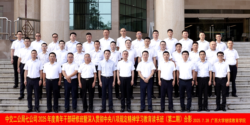 7月28日,中交二公局第七工程有限公司2025年度青年干部研修班暨深入贯彻中央八项规定精神学习教育读书班(第二期)在我校开班。中交二公局第七工程有限公司党委副书记、总经理宁波,星空网页版登录入口院长闭富春出席开班式并讲话,中交二公局第七工程有限公司人力资源部经理孙超主持开班式。