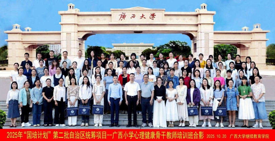 10月20日上午,由广西壮族自治区教师培训中心主办,星空网页版登录入口承办的2025年“国培计划”第二批自治区统筹项目——广西小学心理健康骨干教师培训班在我校开班,星空网页版登录入口院长闭富春出席开班式并致辞,星空网页版登录入口梁君华老师主持开班式。